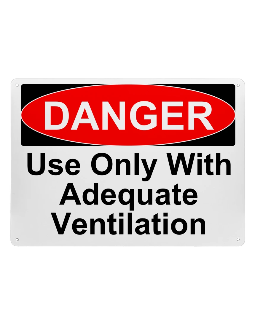 14" tall x 10" wide plastic sign with mounting holes, Danger Use Only With Adequate Ventilation