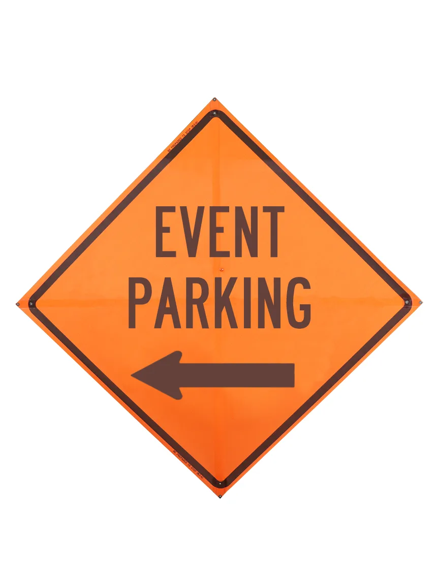 48", Mesh Roll Up Sign w/ Sewn Corner Pockets, EVENT PARKING LEFT ARROW