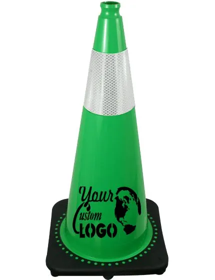 Green 28" 7 lbs JBC Black Base Traffic Cone w/ 6" Reflective Collar w/ Single Color Graphic