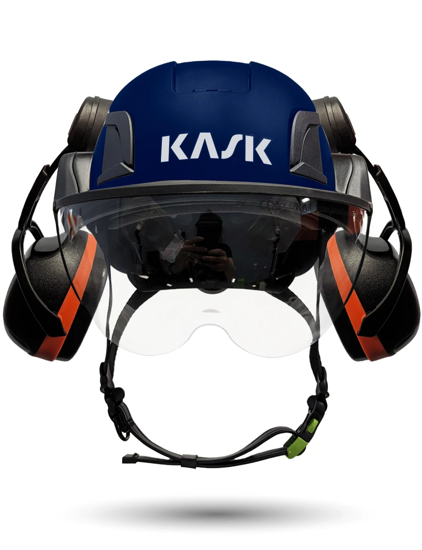 White Kask Zenith X2 ANSI Class E Safety Helmet w/ Half-Face Visor Kit (Clear) & Orange Ear Muffs (High Noise Reduction - 29-31 Db)