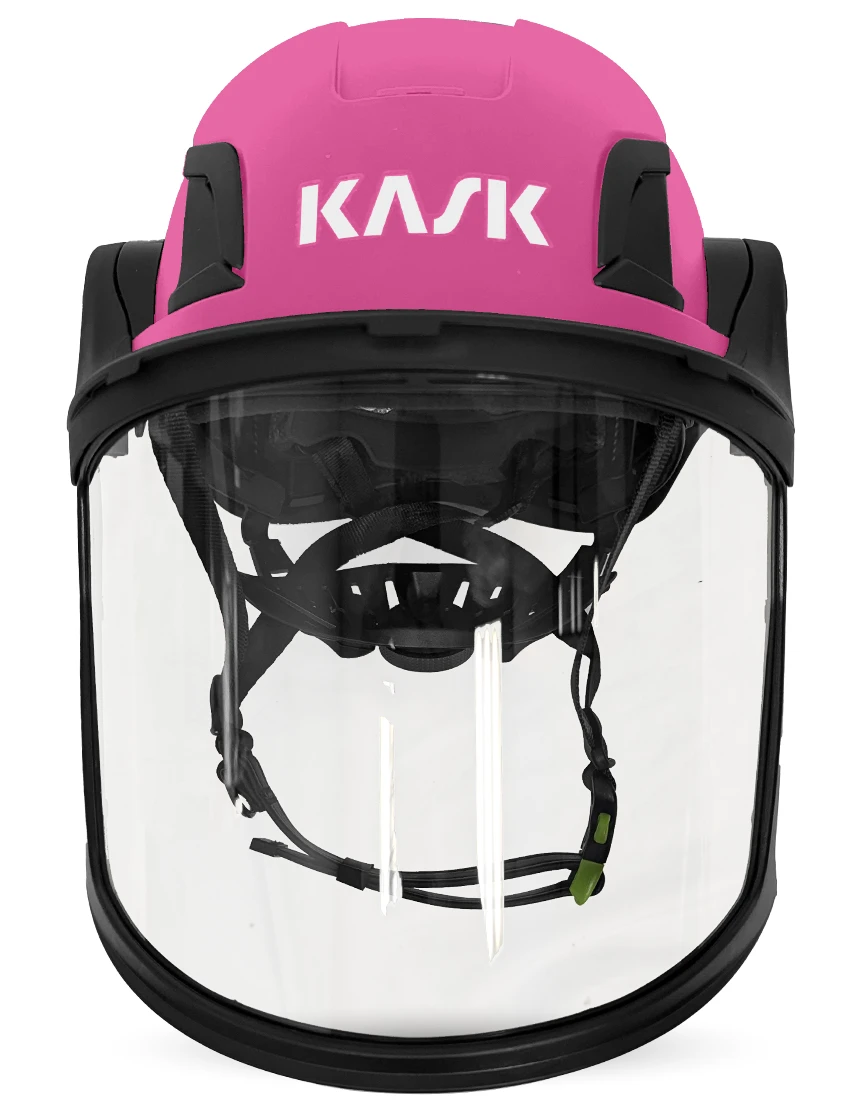Pink Kask Zenith X2 ANSI Class E Safety Helmet w/ Full-Face Visor Kit (Clear) & 360-Degree Sun Shield (Yellow Fluorescent)