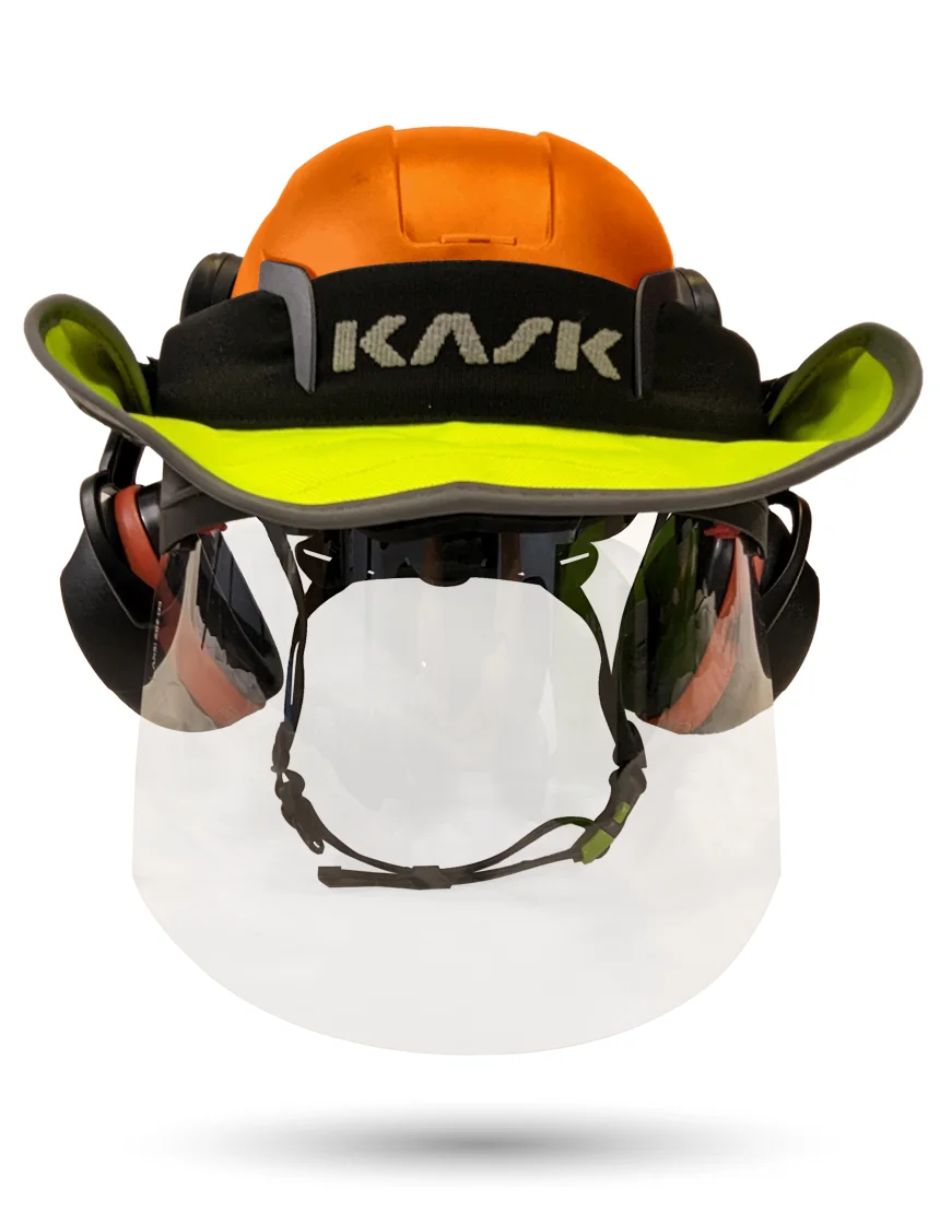 White Kask Zenith X2 ANSI Class E Safety Helmet w/ Full-Face Shield & Brim Kit (Clear) & Orange Ear Muffs (High Noise Reduction - 29-31 Db)