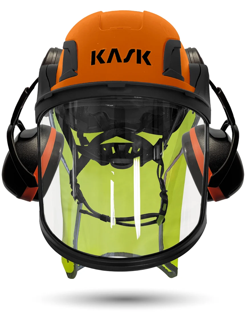 White Kask Zenith X2 ANSI Class E Safety Helmet w/ Full-Face Visor Kit (Clear) & Orange Ear Muffs (High Noise Reduction - 29-31 Db)