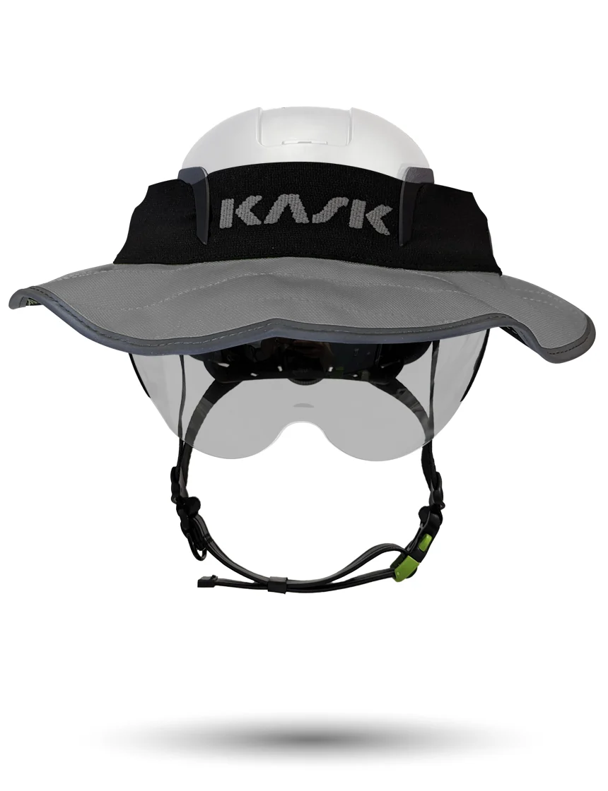 White Kask Zenith X2 ANSI Class E Safety Helmet w/ Full-Face Shield & Brim Kit (Clear) & 360-Degree Sun Shield (Yellow Fluorescent)