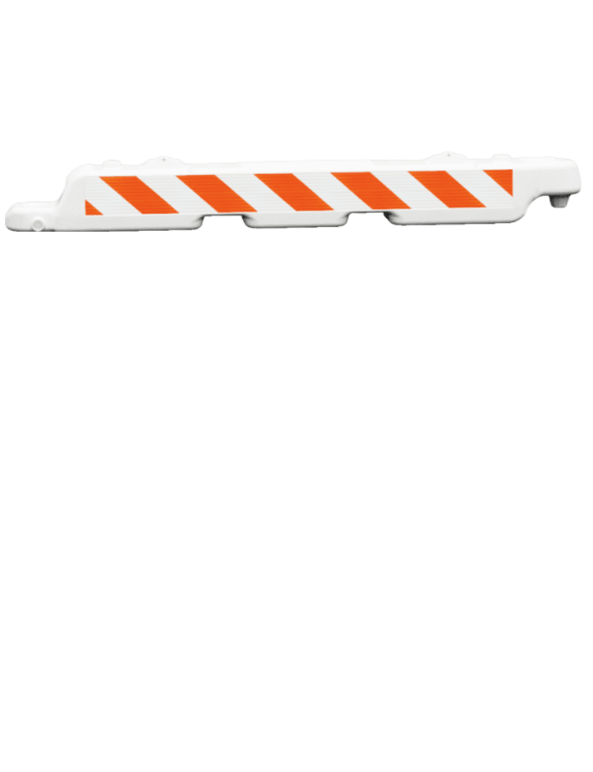 Each barricade holds up to 26 gallons of water, creating a stable and secure barrier that resists shifting from wind or passing equipment — while remaining easy to move when empty. - Interlocking, Pivoting Connections