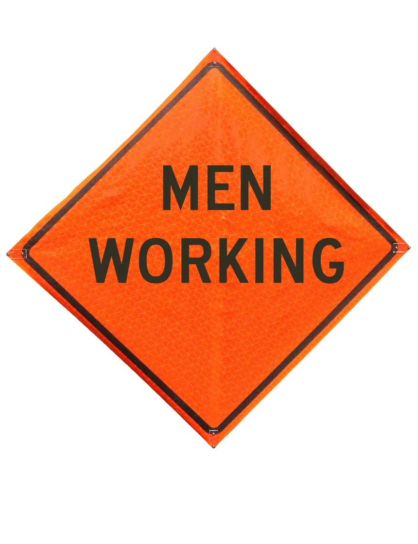 36", Heavy Duty, Marathon Reflective Roll Up Sign, Men Working (Text)