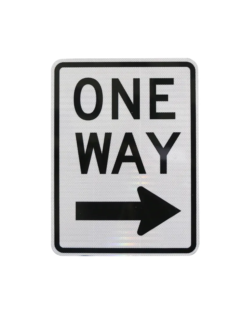 | RS-ALU-R6-2R-18-HI | One Way w/ Right Arrow Signs R6 2 18" X 24" Solid 080 Gauge Aluminum |