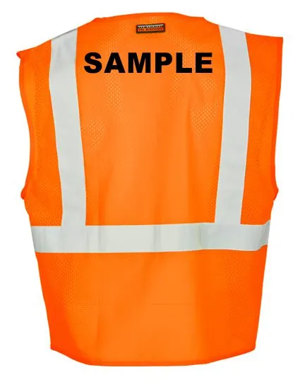 Orange, Class 2, Three Pocket, Zipper, Mesh Vest, Small w/ Custom Black Lettering