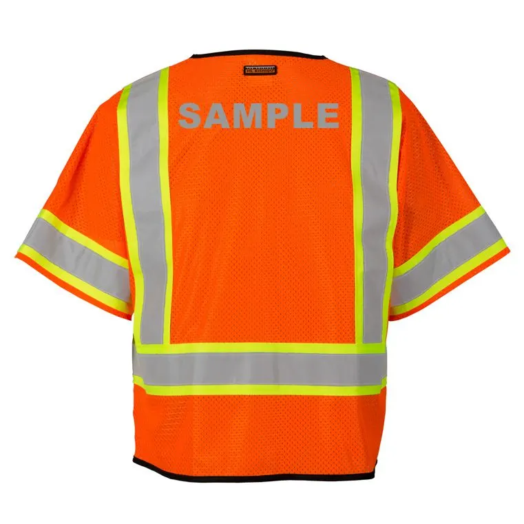 Orange, Single Pocket, Contrasting Mesh Class 3 Vest, 2Xl-3Xl w/ Reflective Custom Lettering