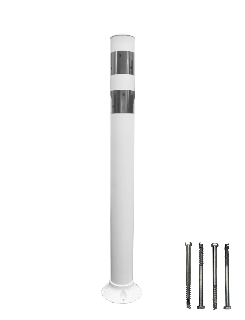 Pexco 36" White City Post Surface Mount w/ 2 White Reflective Collars & Asphalt Mounting Hardware