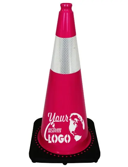Pink 28" 7 lbs JBC Black Base Traffic Cone w/ 6" Reflective Collar w/ Single Color Graphic