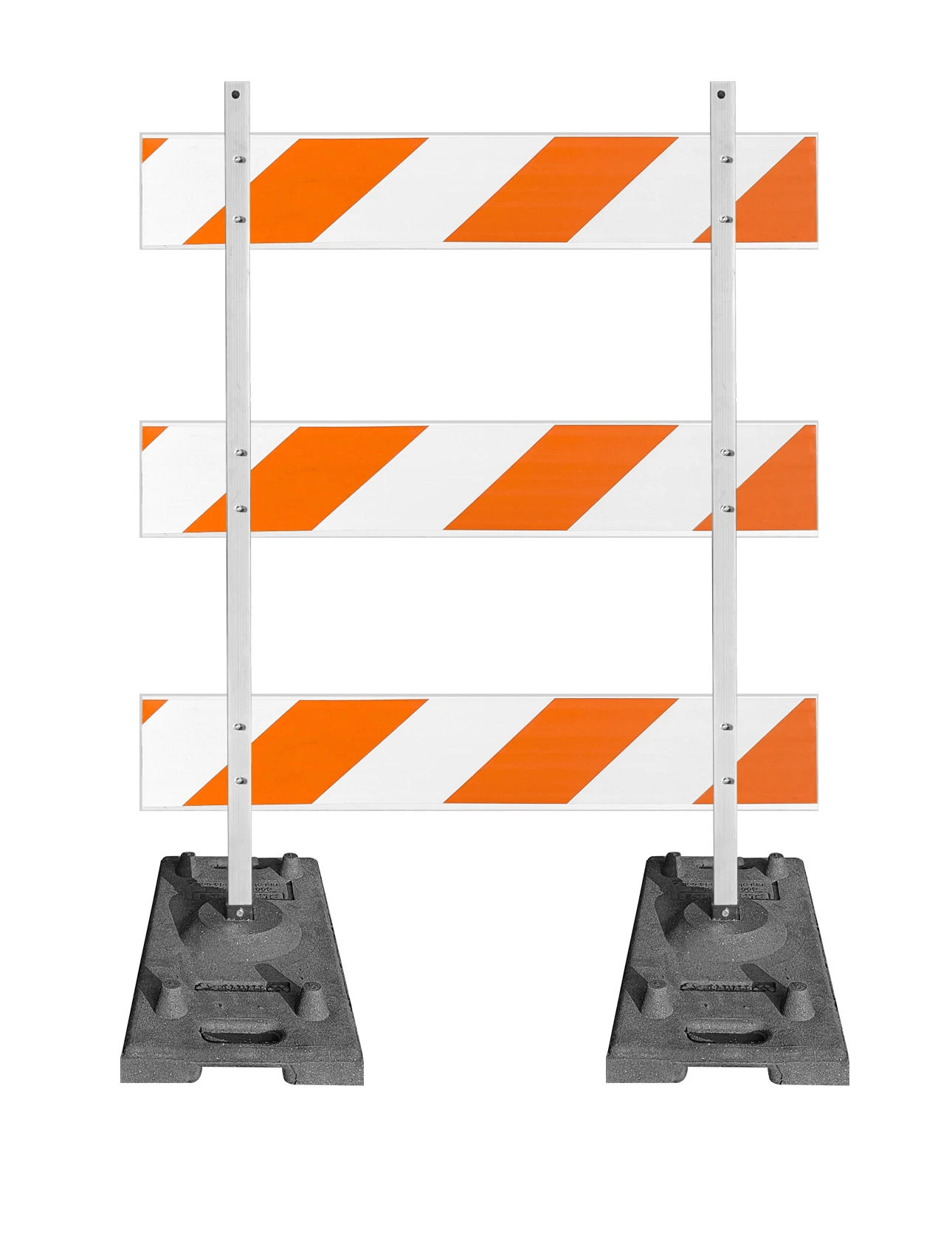 - Three (3) 4' x 8" x 1" Plastic Rails with Orange & White Reflective Sheeting (Choose Engineer Grade (EG) or High Intensity (HI) sheeting)