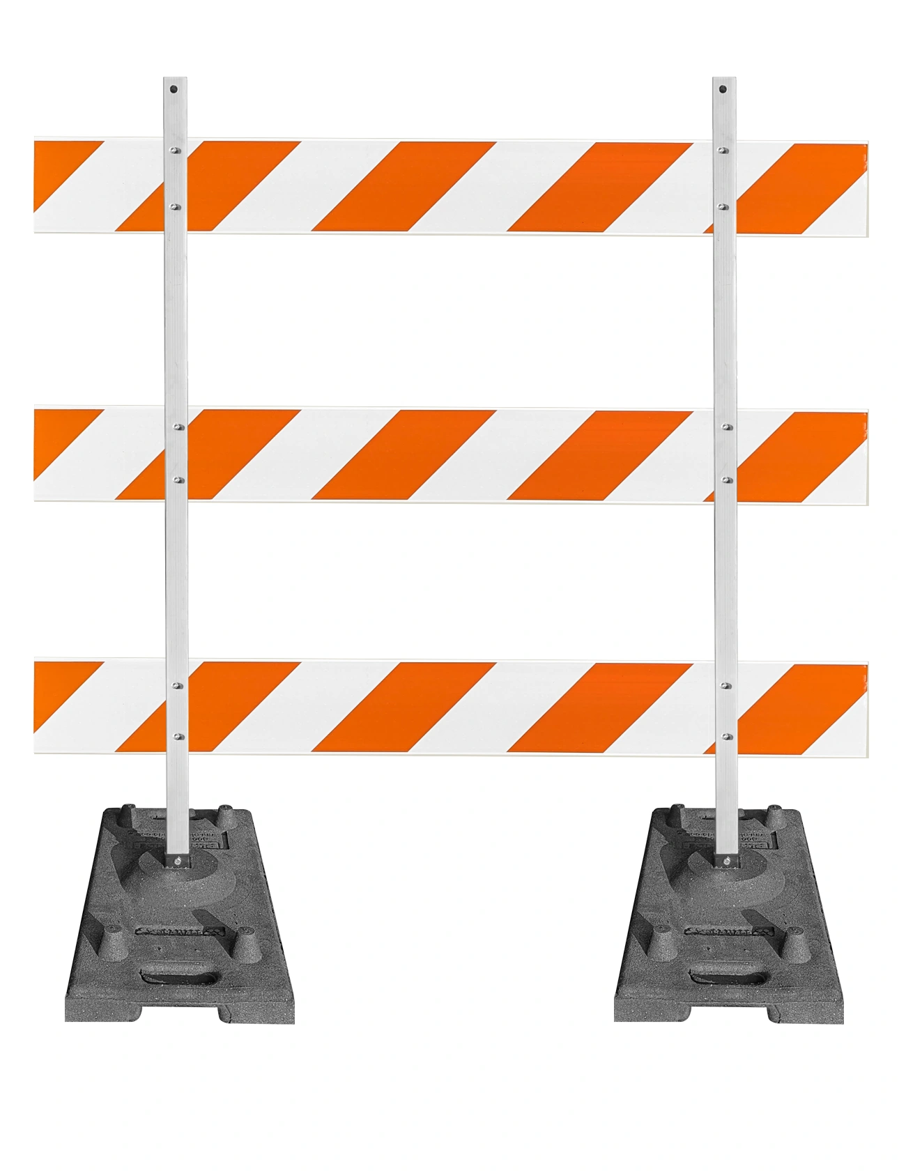 - Three (3) 6' x 8" x 1" Plastic Rails with Orange & White Reflective Sheeting (Choose Engineer Grade (EG) or High Intensity (HI) sheeting)