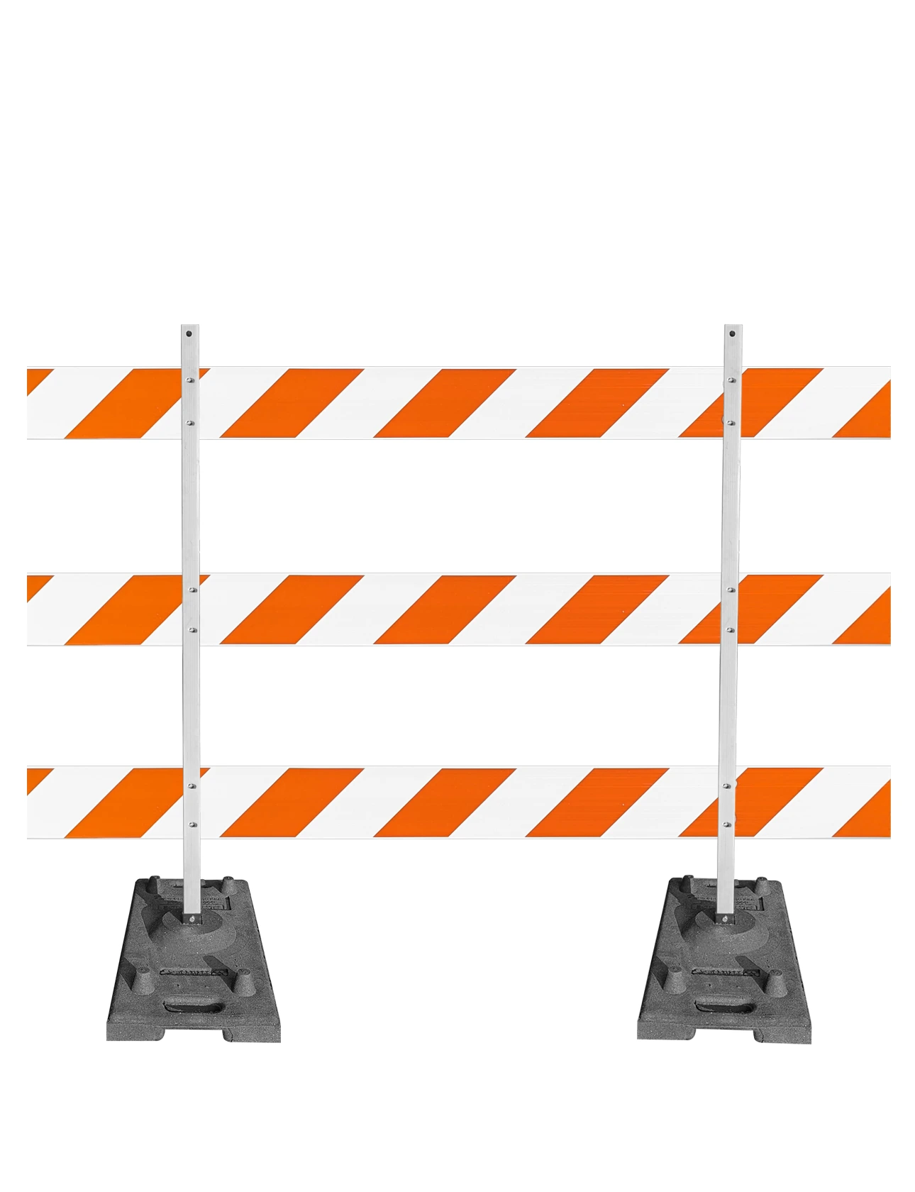 Power Post Uprights with Rubber Ballast Feet Type 3 Barricade with 8' Plastic Rails