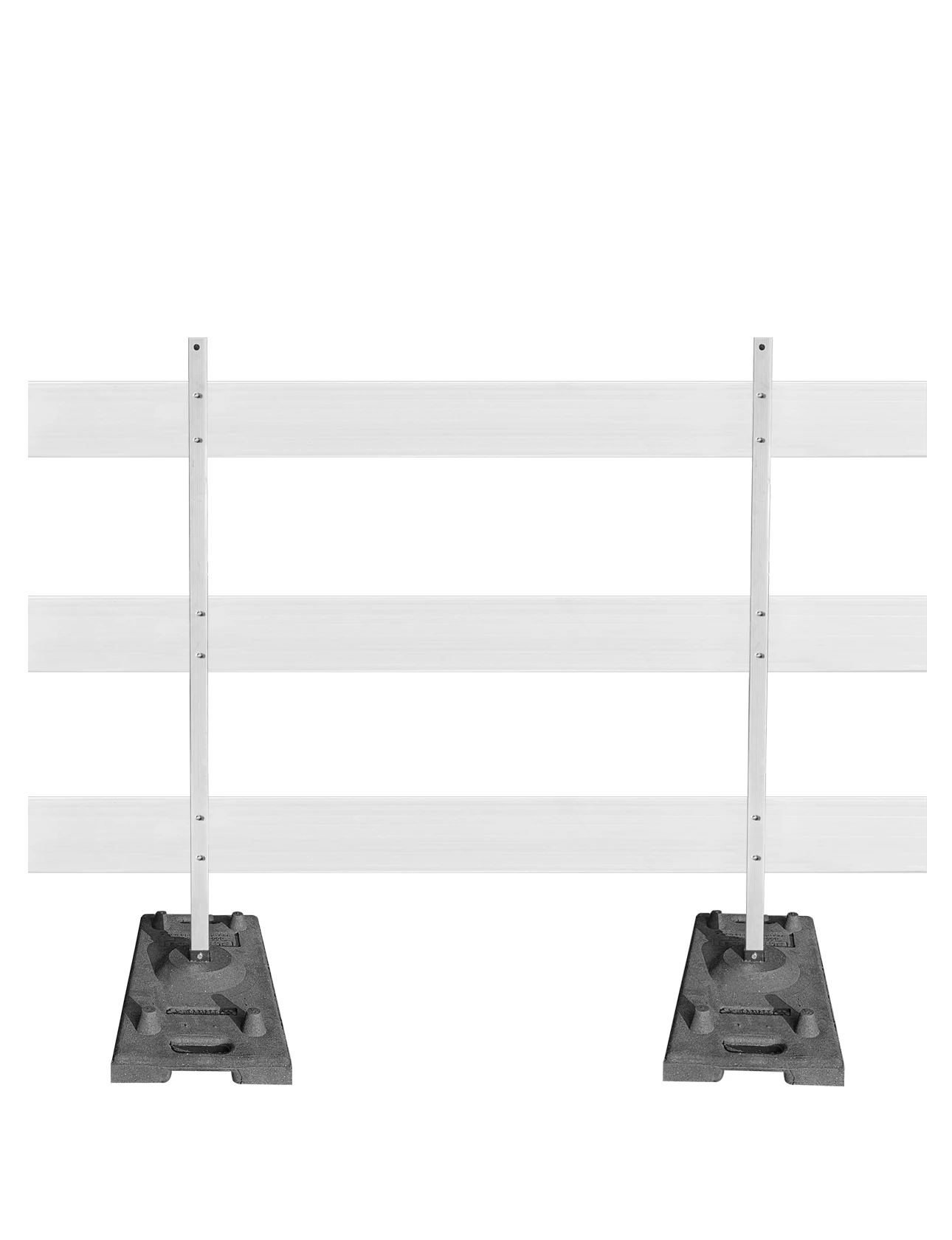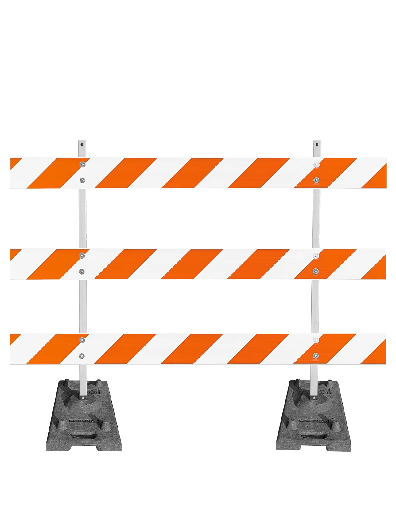 Power Post Uprights with Rubber Ballast Feet Type 3 Barricade with 8' Plastic Rails