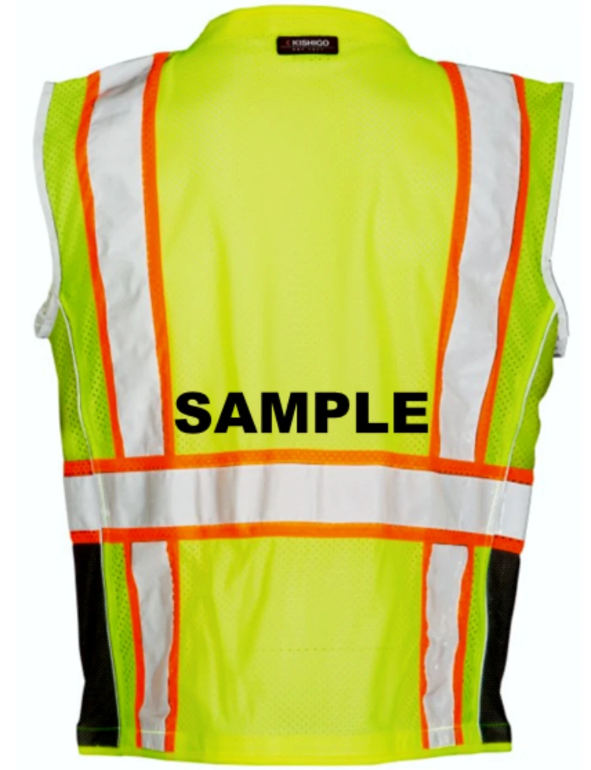Kishigo Premium Black Series™ Lime, Class 2 Safety Vest, Large with Custom Black Text