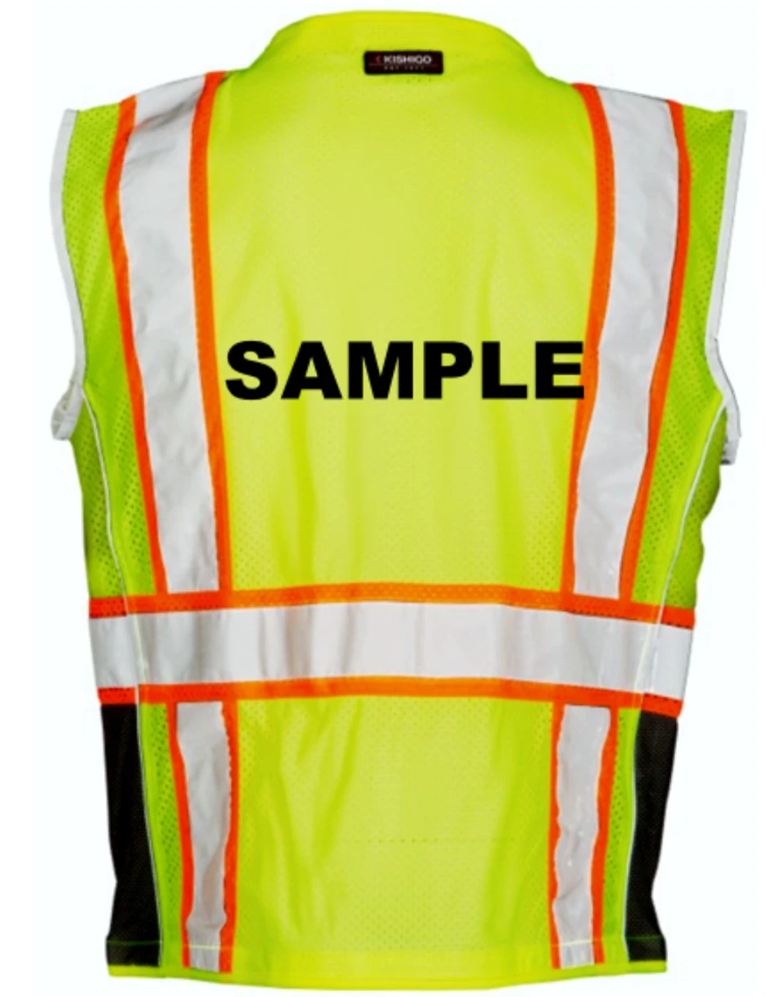 Kishigo Premium Black Series™ Lime, Class 2 Safety Vest, Medium with Custom Black Text