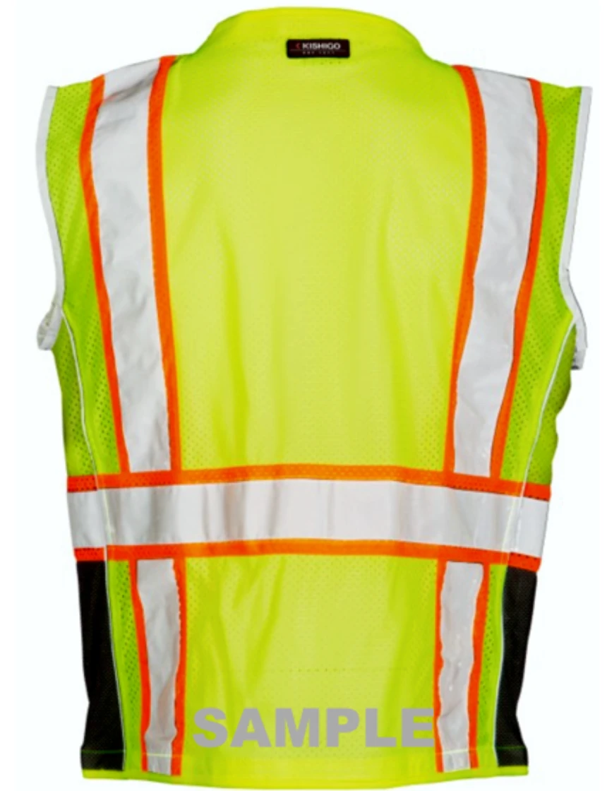 Kishigo Premium Black Series™ Lime, Class 2 Safety Vest, 2XL with Custom Reflective Text