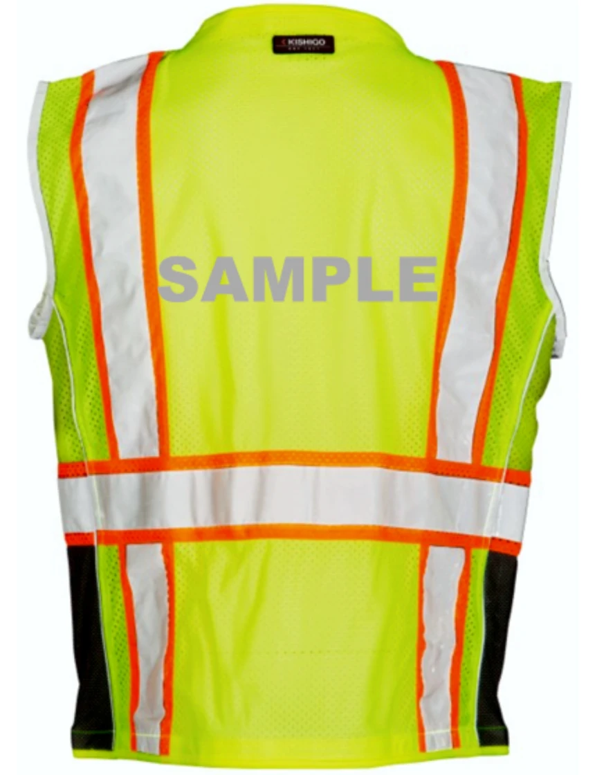 Kishigo Premium Black Series™ Lime, Class 2 Safety Vest, Medium with Custom Reflective Text