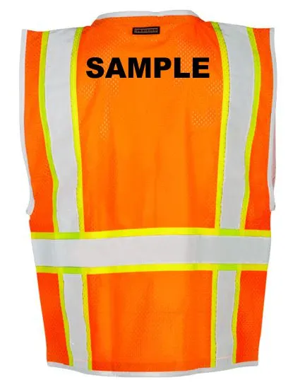 Premium Brilliant, Orange Mesh, Class 2 Surveyors Vest, 2Xl w/ Non-Reflective Custom Lettering