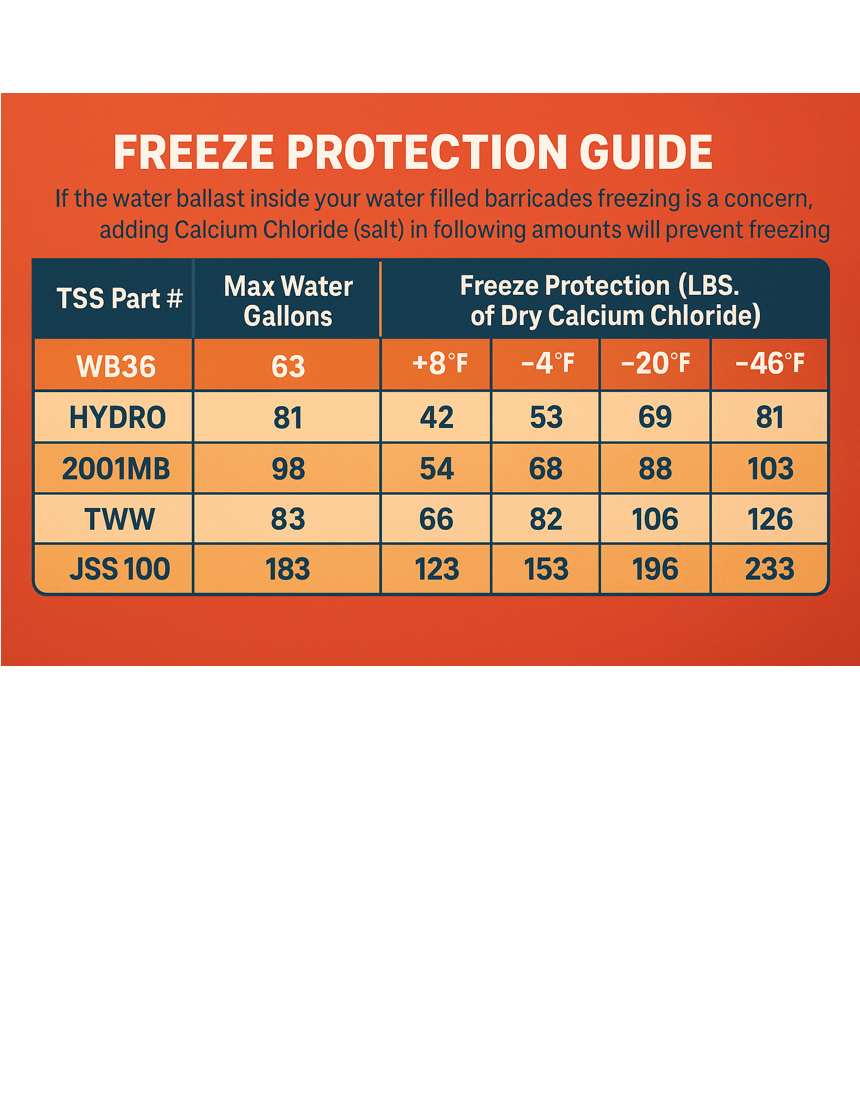 - Fast Filling & Draining: Designed for rapid deployment, each unit features a large, threaded top fill-port for quick ballast loading and dual bottom drain plugs to speed up teardown when the job is done.