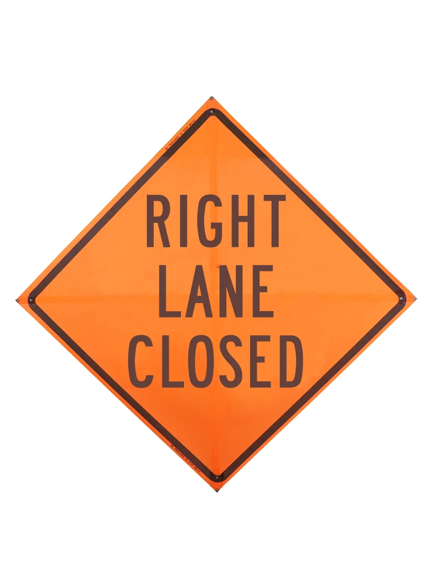 36", Mesh Roll Up Sign w/ Sewn Corner Pockets, RIGHT LANE CLOSED
