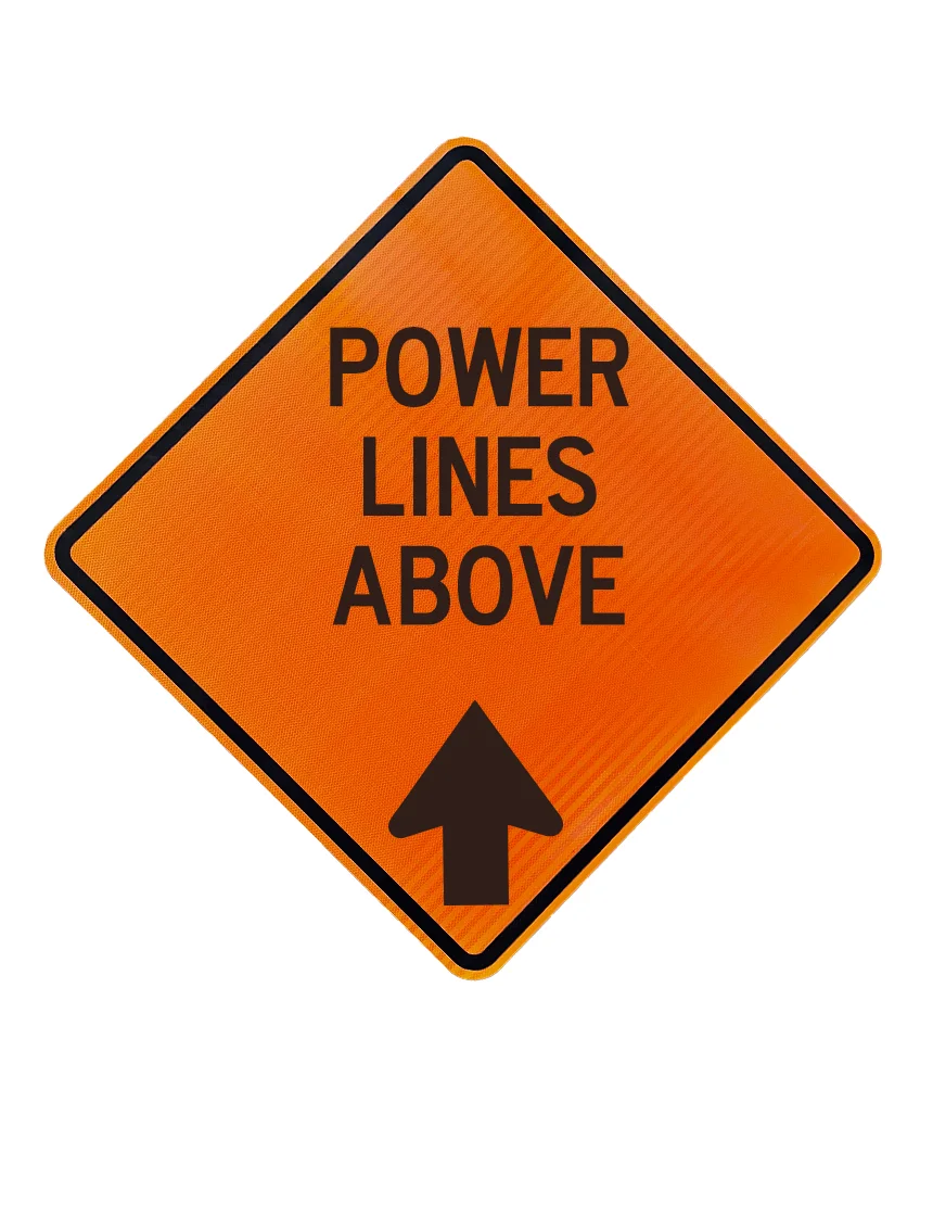 36", Aluminum, High Intensity Reflective Sign, Power Lines Above w/ Bottom Arrow