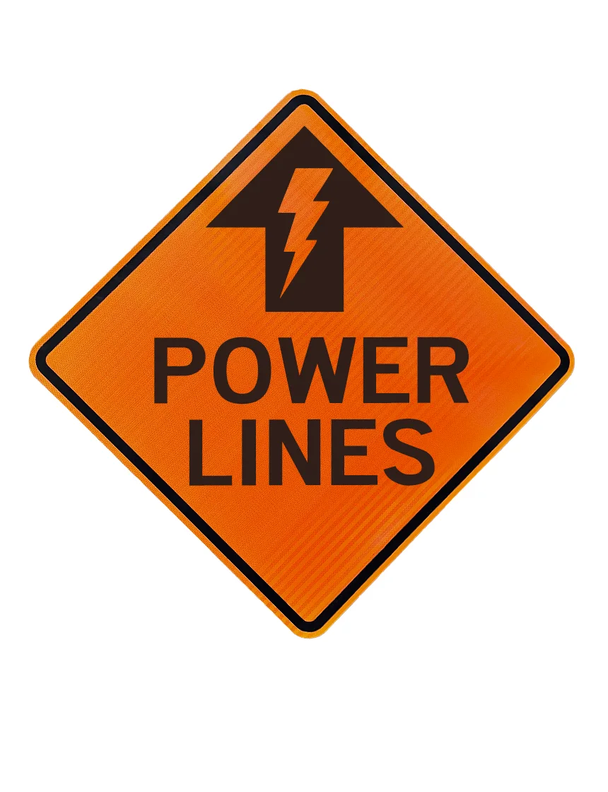36", Aluminum, High Intensity Reflective Sign, Power Lines w/ Lightning Top Arrow
