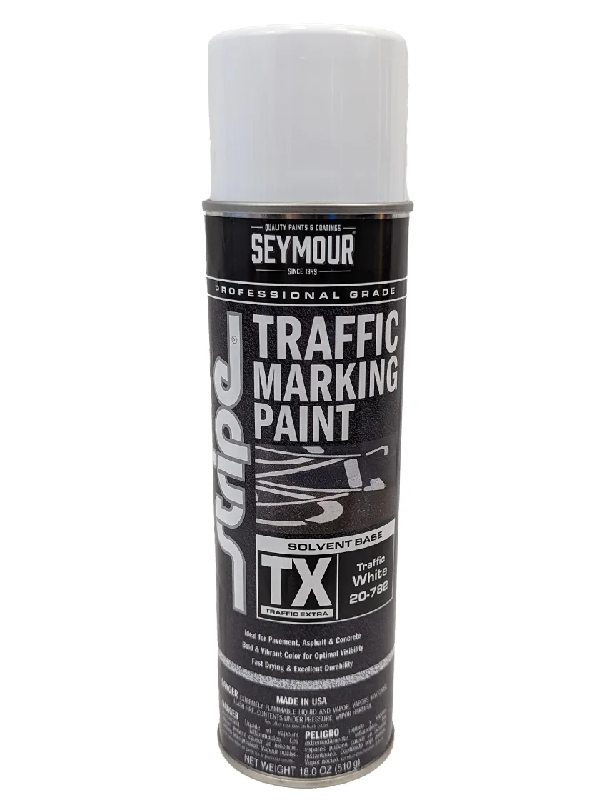 A long lasting, solvent based, traffic marking paint specifically formulated for line striping over freshly coated asphalt. Fresh sealcoat will not 'bleed-thru' this paint unlike other striping paints. Approximately 250 linear feet per can (4" wide stripe). The spray head is universal "T" Type Inverted Nozzle for striping machines.