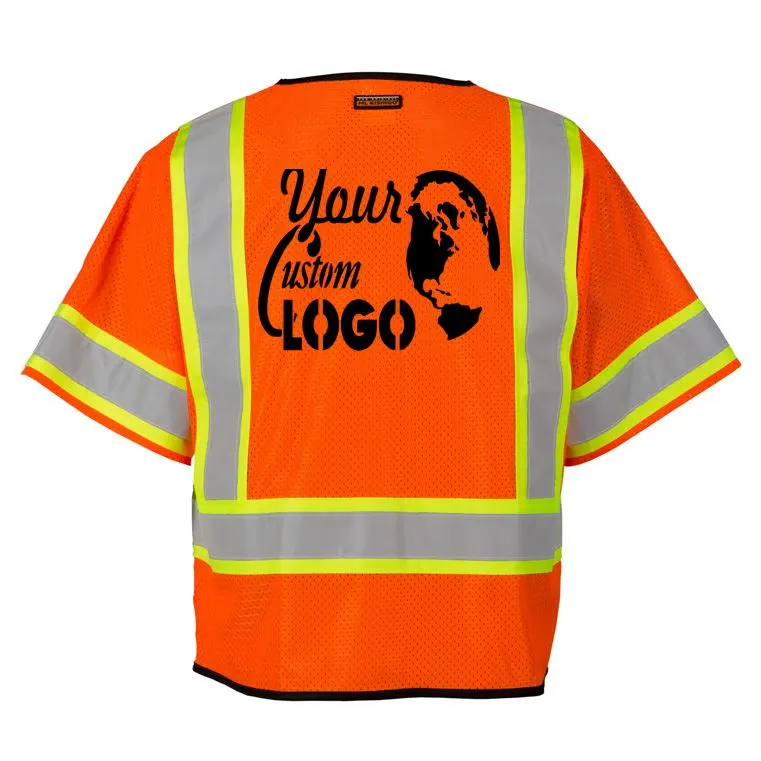 Orange, Single Pocket, Contrasting Mesh Class 3 Vest, L-Xl w/ Single Color Graphic