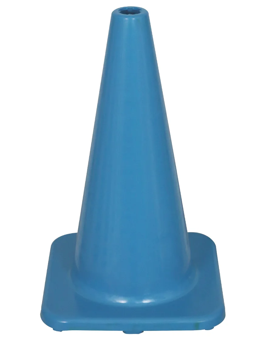 18" Economy Traffic Cones are a great cost effective traffic cone for a wide variety of uses. These bright colored traffic cones are injection molded PVC so they are both light weight and sturdy. Available in Orange, Lime, Blue, Yellow, Red and Purple. These 18 inch traffic cones are great for many factory applications, jobsites, parking lots, schools, and sports use, these cones are easy to stack, pick up, and move.