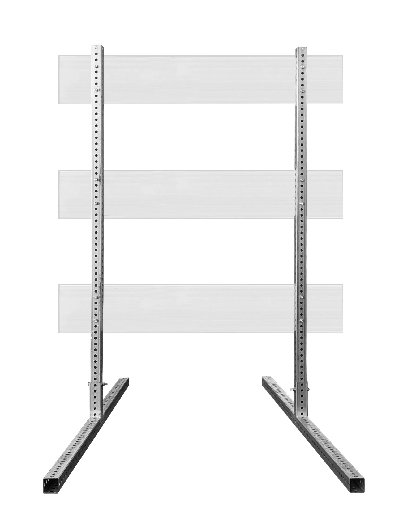 Unlike tubular-style uprights, these barricades use stout galvanized square steel tube uprights and matching square tube feet to create a more rigid, durable framework. The square shape provides enhanced stability in high-wind conditions and resists bending or twisting during repeated job site use.:contentReference[oaicite:1]{index=1}