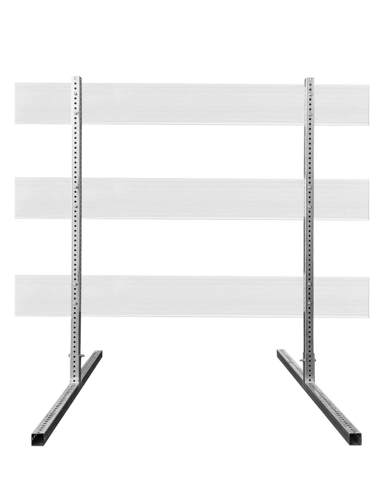 - Three (3) 6' x 8" x 1" Plastic Rails with Orange & White Reflective Sheeting (Choose Engineer Grade (EG) or High Intensity (HI) sheeting)