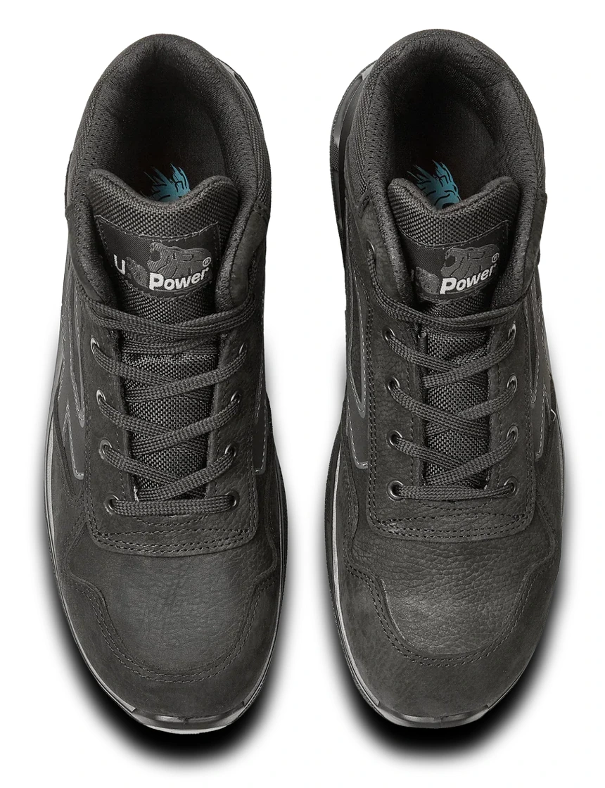 U-Power "Tempest" - Mid-Cut, Metal Free Safety Toe Shoe with "Energy Return" to Reduce Fatigue, Black Upper with Black Sole