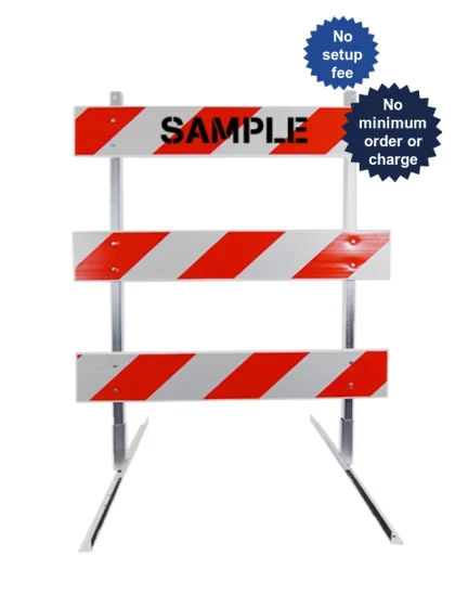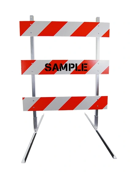 Angle Iron Type III Barricade -63" Tall Galvanized Steel Frame with Three 6' Plastic Boards w/HI Sheeting on Both (2) Sides of Rails & Custom Lettering