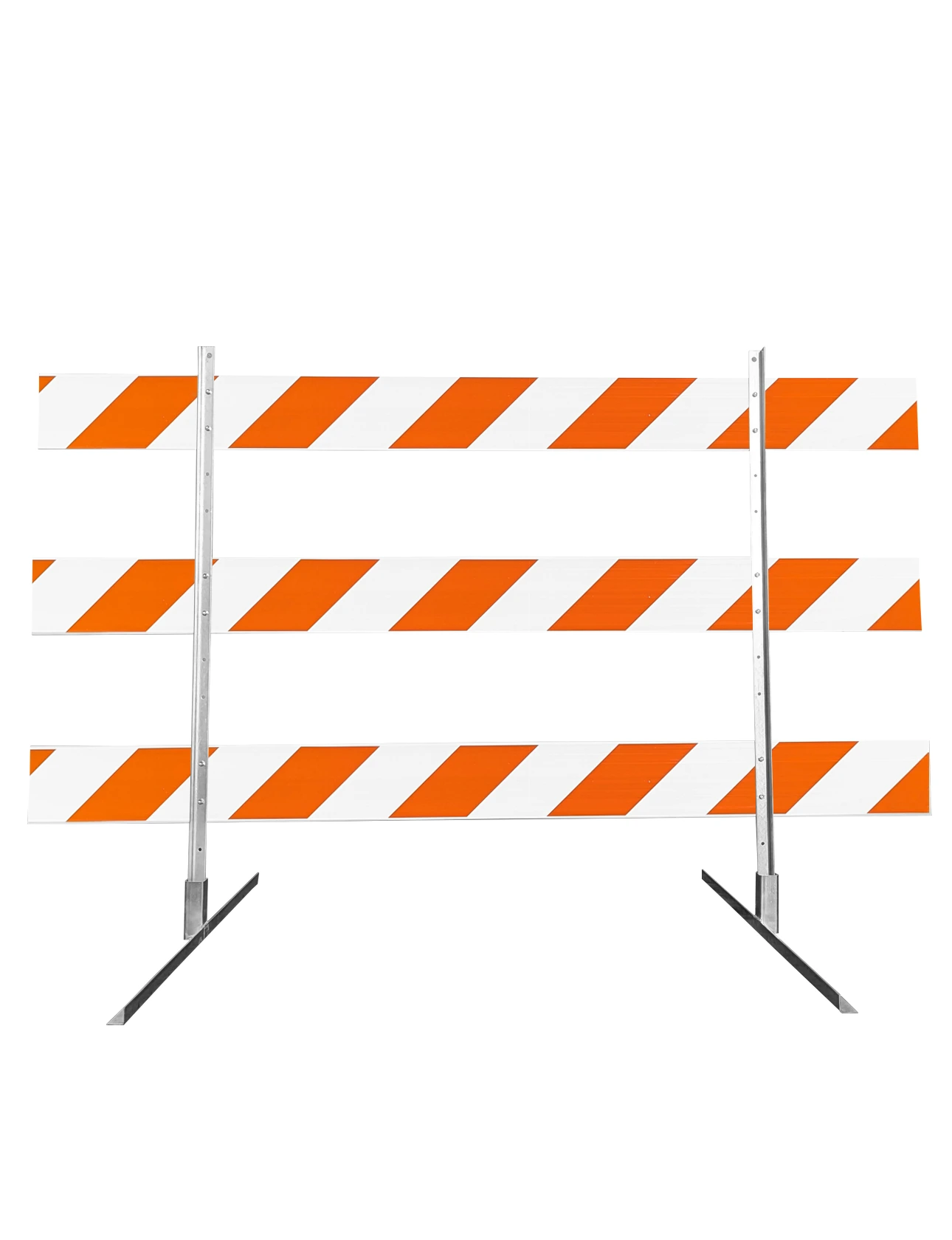 63" Tall MUTCD Type III Barricade – 8′ Wide (1.75" Square Steel Sign Post Uprights and Galvanized Steel 'Angle-Iron' Feet)