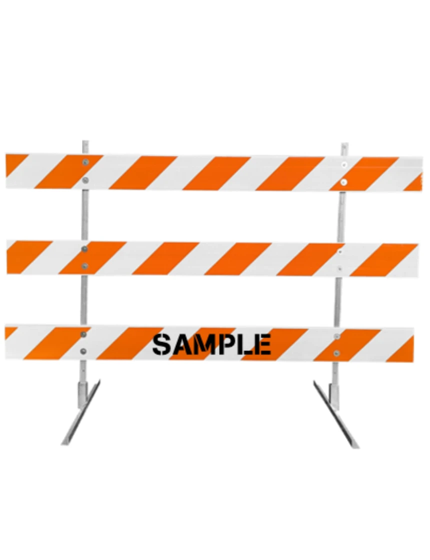 - Three (3) 8' x 8" x 1" Plastic Rails with Orange & White Reflective Sheeting (Choose Engineer Grade (EG) or High Intensity (HI) sheeting)