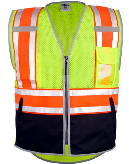 Built for all-day wear, the vest features Ultra-Cool™ 100% polyester mesh for improved airflow, coupled with a heavy-duty black bottom front that keeps the appearance clean and professional even after extended use. A zipper front closure reinforced with durable webbing delivers a secure fit made for job-site conditions.