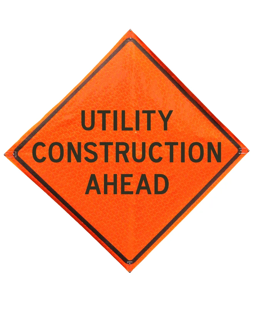36", Heavy Duty, Marathon Reflective Roll Up Sign, Utility Construction Ahead