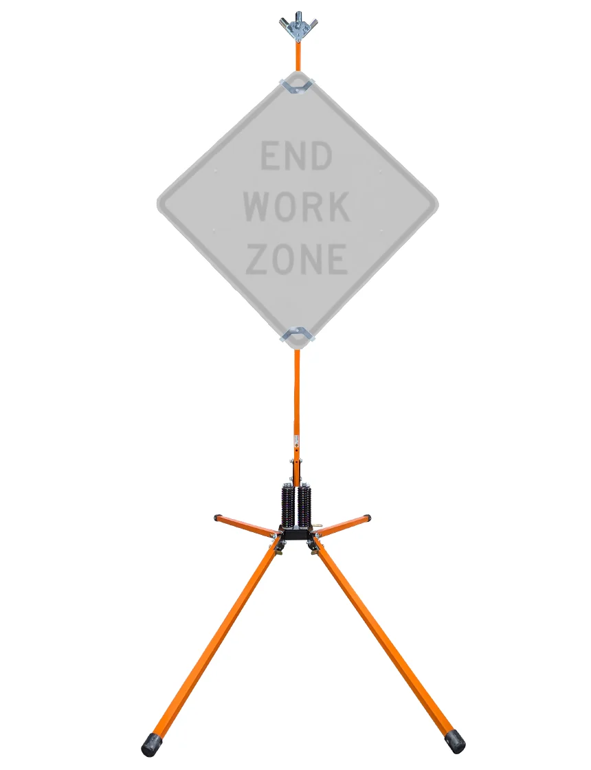 - Telescoping Mast: Allows for adjustable sign height and improved driver visibility while remaining compact for easy storage and transport.