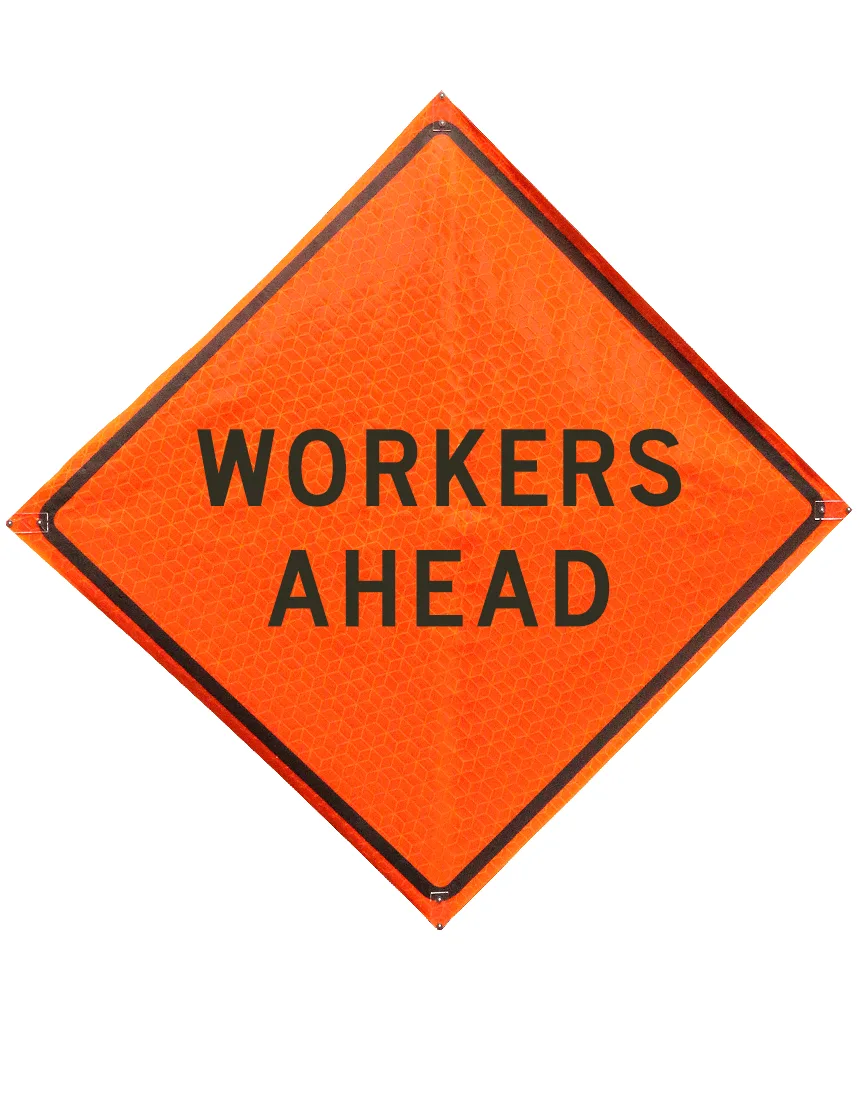 48", Marathon Reflective Roll Up Sign, WORKERS AHEAD