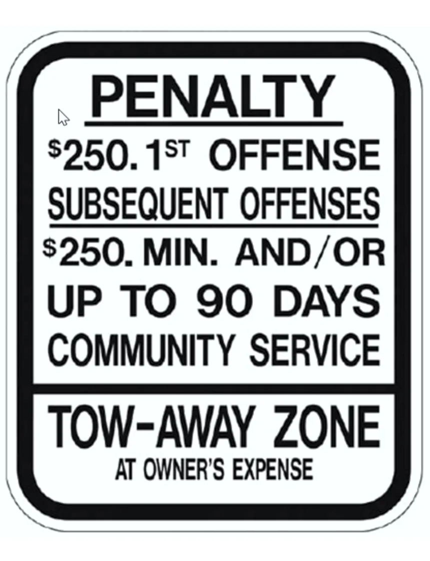 New Jersey Penalty $250 1st Offense & Tow-Away Zone Sign