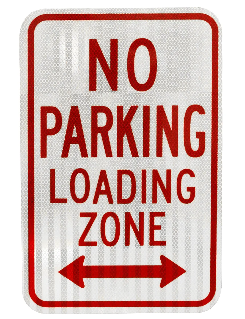 12" X 18" No Parking Loading Zone, Double Arrow w/White Hip Sheeting