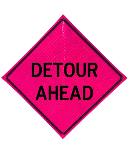 | RU-36-REF-PNK-DETAHD | 36" Heavy Duty, Pink Reflective Roll Up Sign, Detour Ahead |