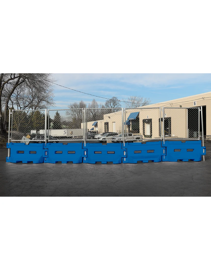 Our custom designed optional OnePro™ Fence Topper (Patent Pending) contains a fence panel which is 48" tall and 66" wide with specially designed long posts which act to connect to the next barricade, for use in construction and perimeter safety and security. Total height of the OnePro™ fence panel is 98" and they are 72 1/2" wide post to post.